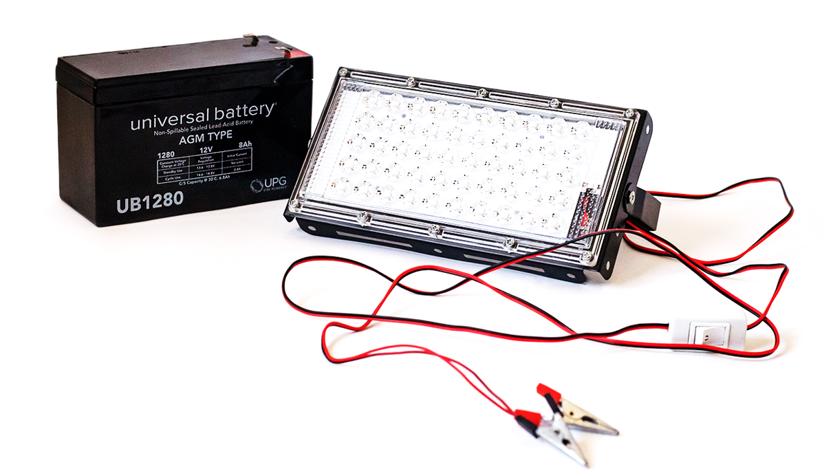 Light comes with 10ft of lead wires with alligator clips and a on/off rocker switch
